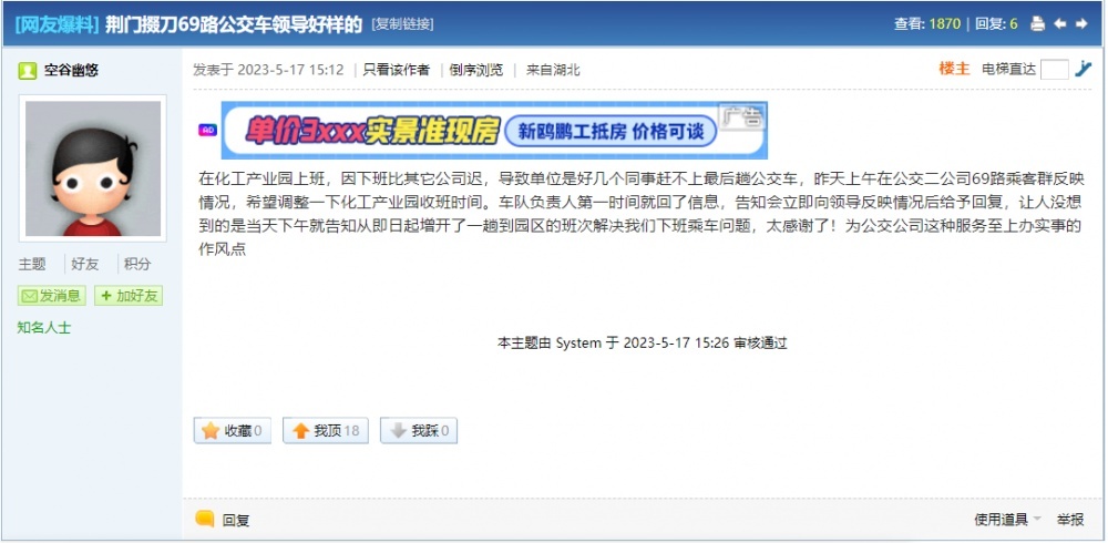 “太感謝了!為公交公司這種服務(wù)至上、辦實事的作風點贊!”